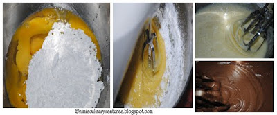 - To this beat in the cocoa-flour mix slowly till all the flour is well incorporated.
